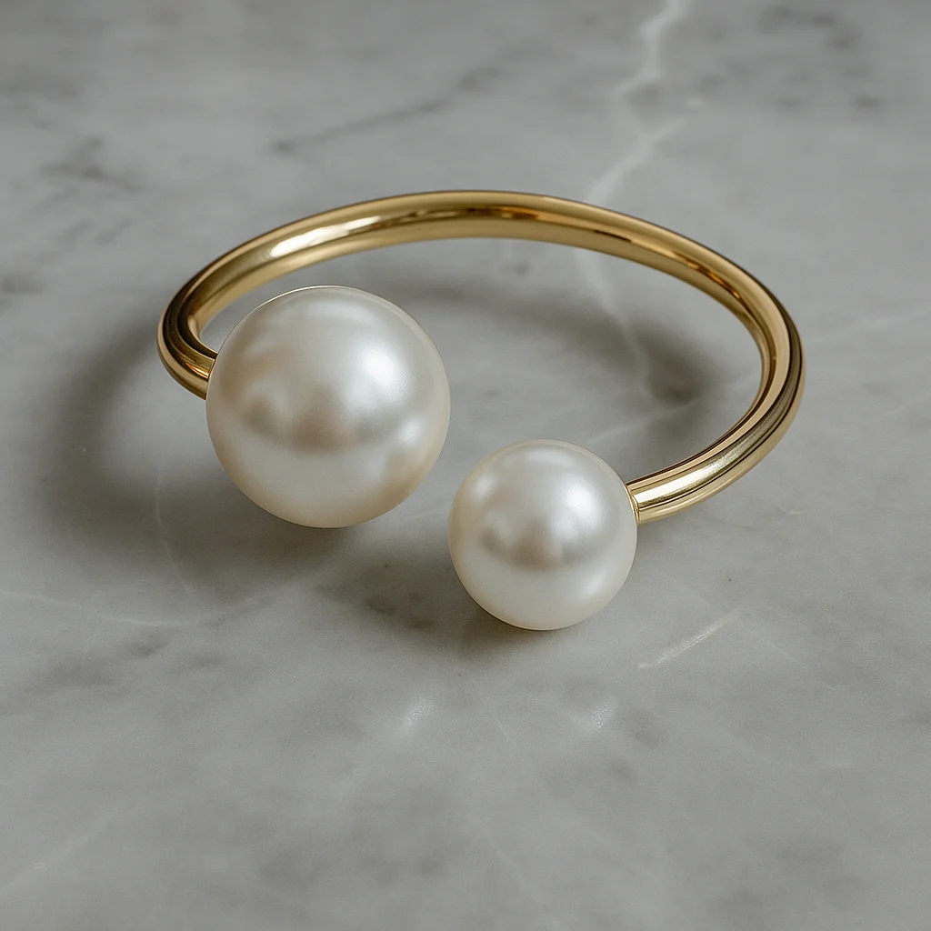 Elegant Pearl Open Cuff Bracelet – Gold Plated Jewelry for Women