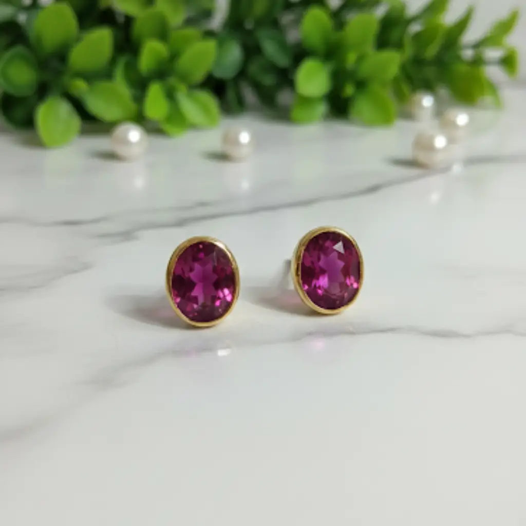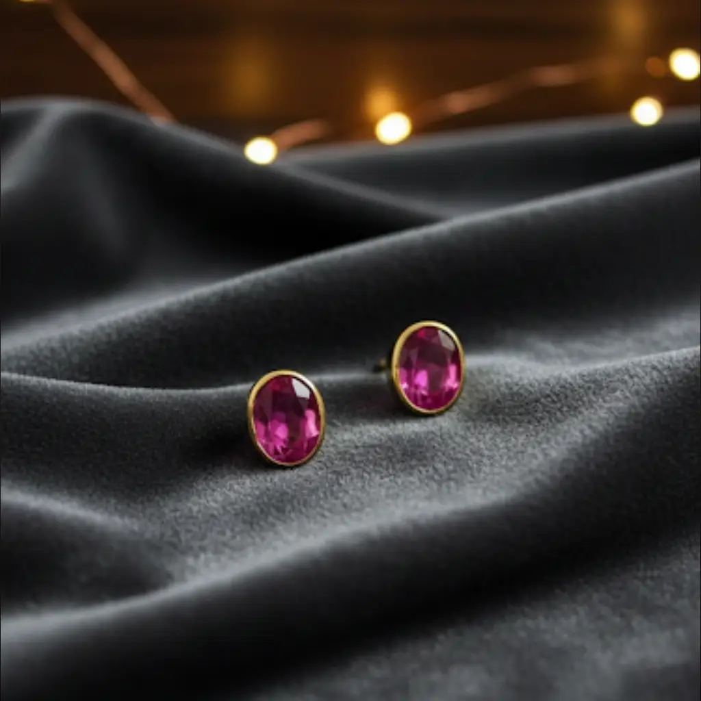 Elegant gold plated ruby red oval stud earrings with a minimalist design, perfect for daily wear, office wear, and special occasions.