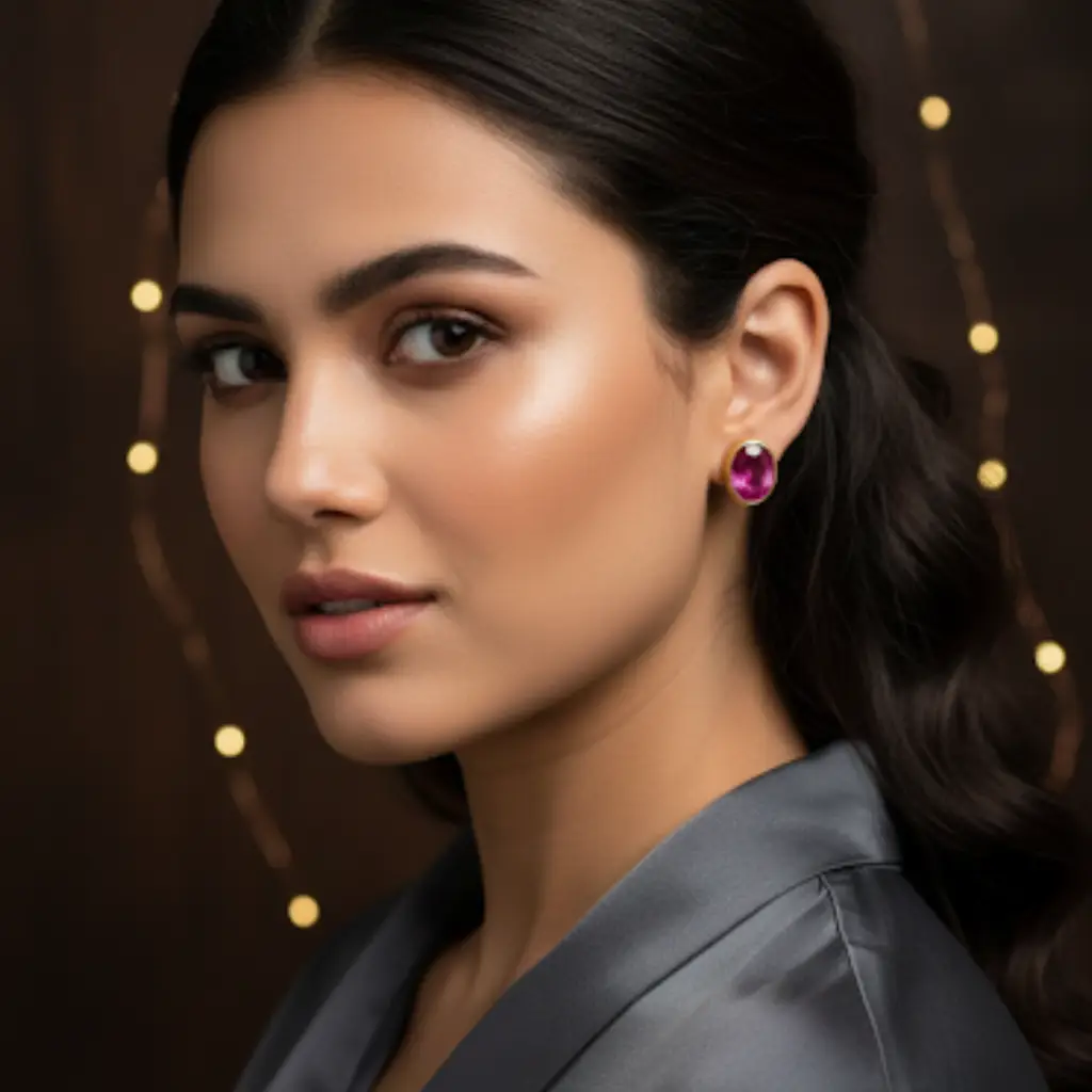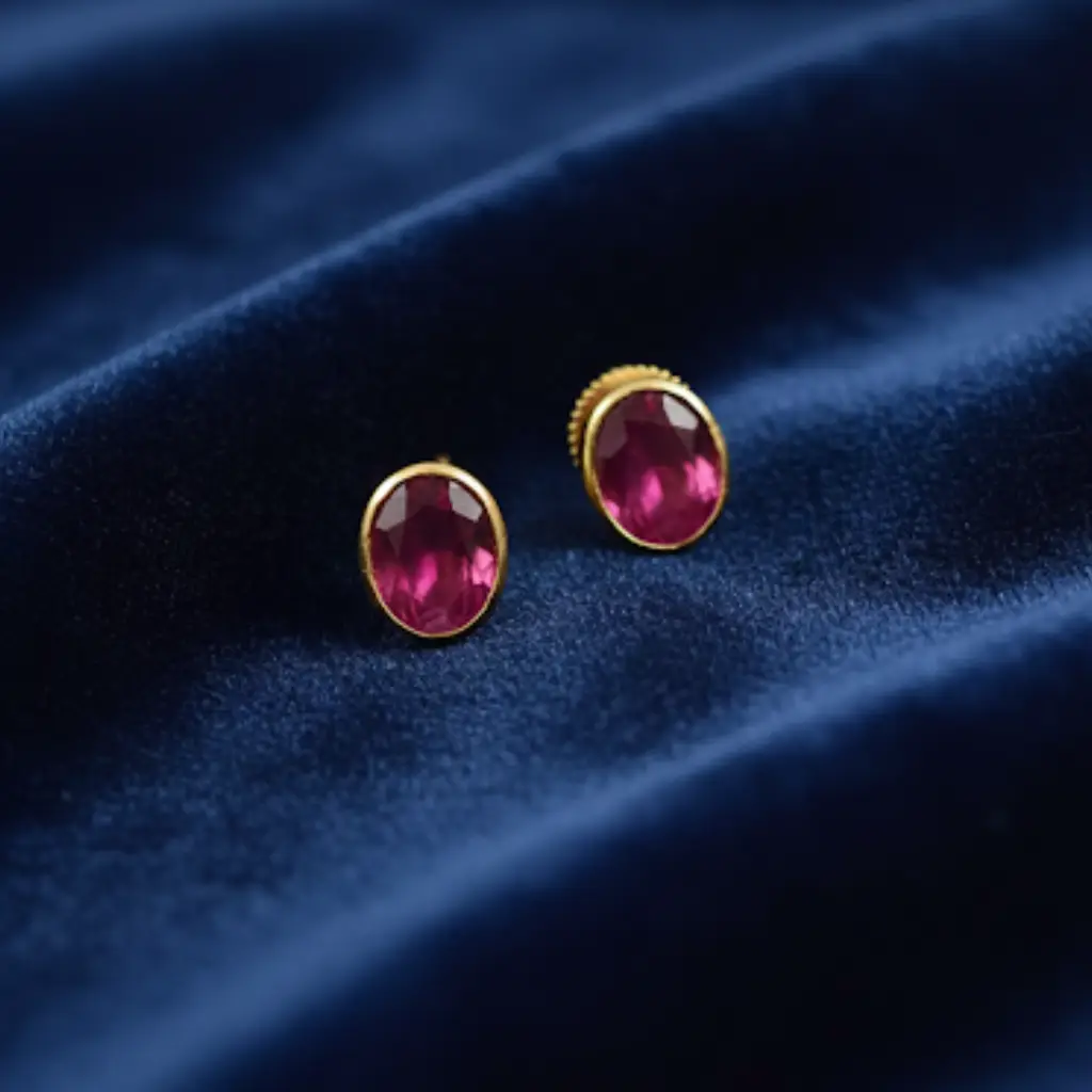 Gold Plated Ruby Red Oval Stud Earrings for Women | Minimalist Daily & Party Wear Jewelry